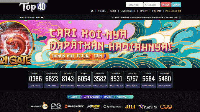 Ketika sudah bergabung di TOP4D merupakan situs slot online terpercaya anda akan menikmati beragam keuntungan yang telah di sediakan untuk member baru maupun member setia kami. Memiliki beragam permainan dan jenis permainan. dimulai dari Slot, Casino, Sport, Tembak ikan, Togel. Dengan adanya game kami terlengkap akan memberikan kami rating sebagai situs judi online terlengkap dalam berbagai jenis permainan judi online.